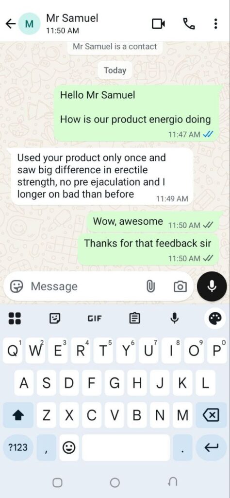 My brother. This your product dey work ooo. My woman sweat so much. We bang well well. I no fit believe product like this dey oo.