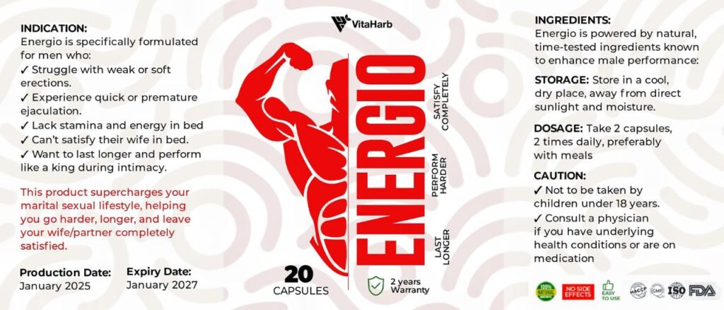 Energio is crafted with potent, natural ingredients to boost energy, stamina, and overall vitality.