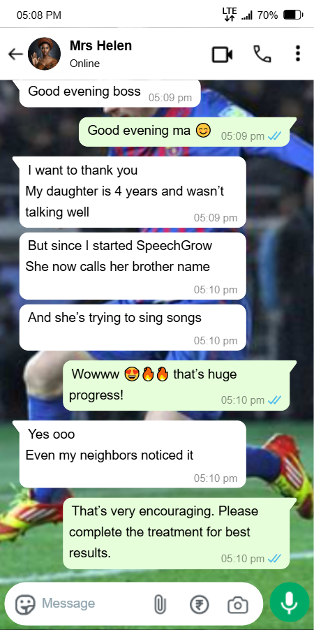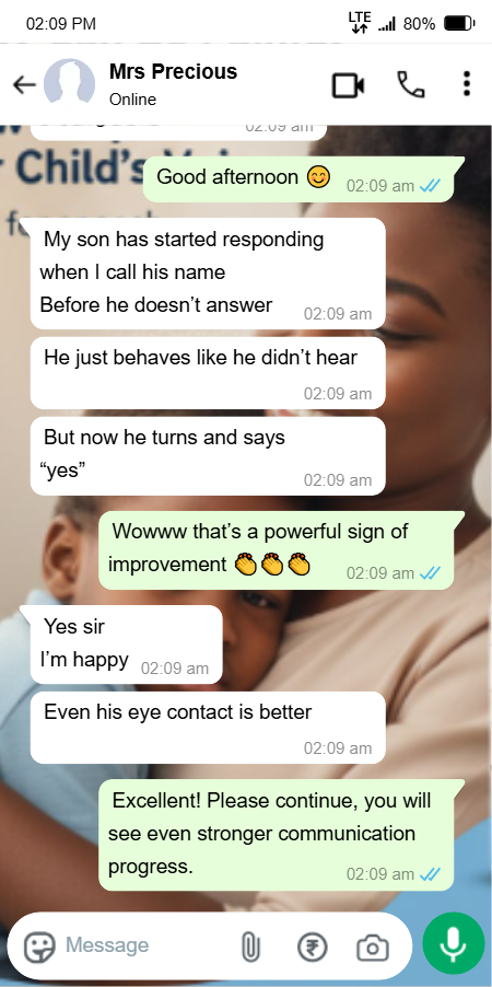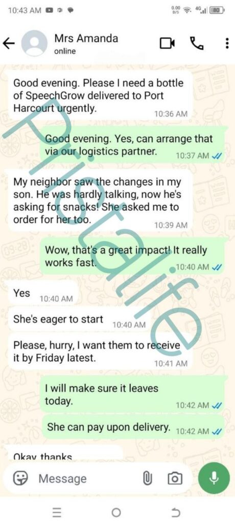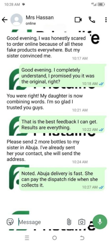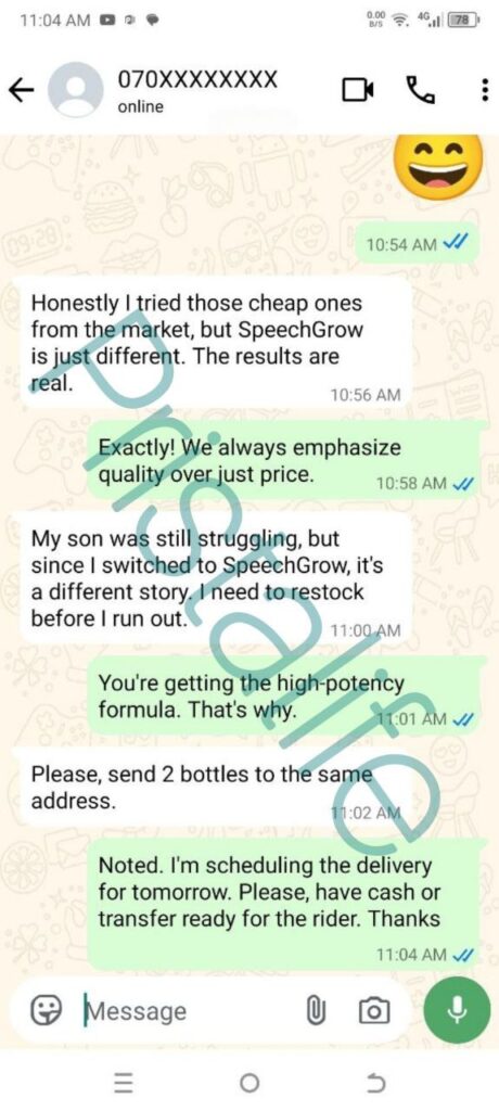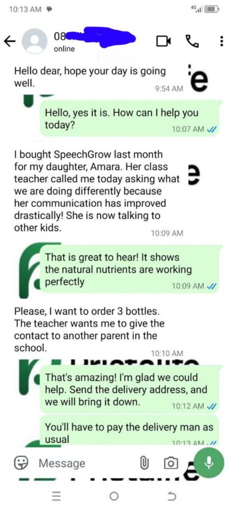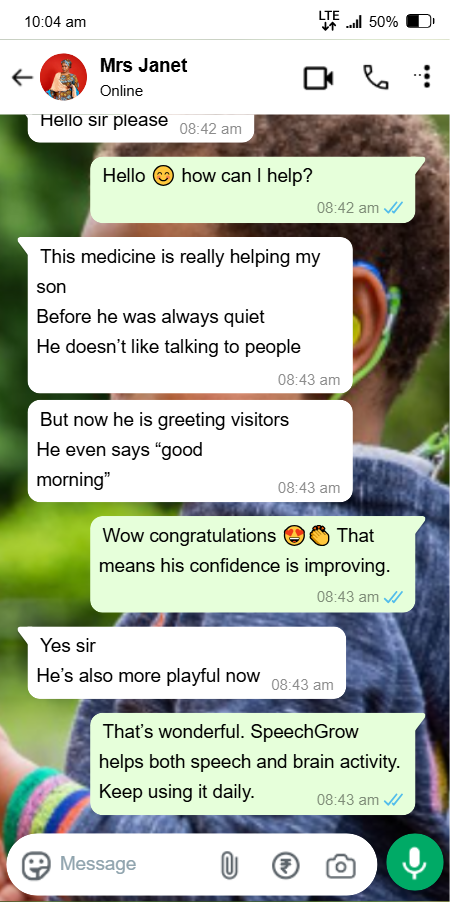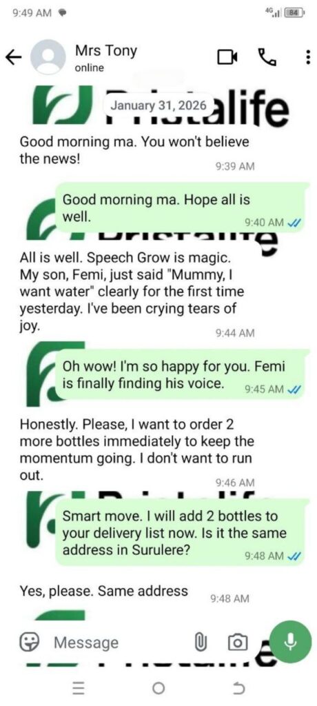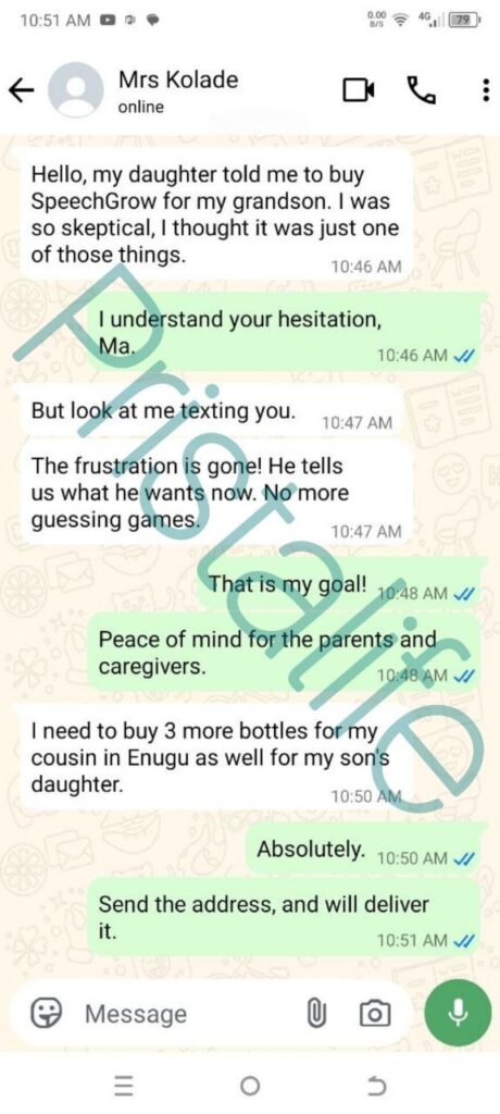 I felt helpless and blamed myself sometimes. I started SpeechGrow after someone recommended it. Within 2–3 weeks, he began repeating simple words. By the end of the first bottle, he started saying “Daddy come” and “Mummy help.”